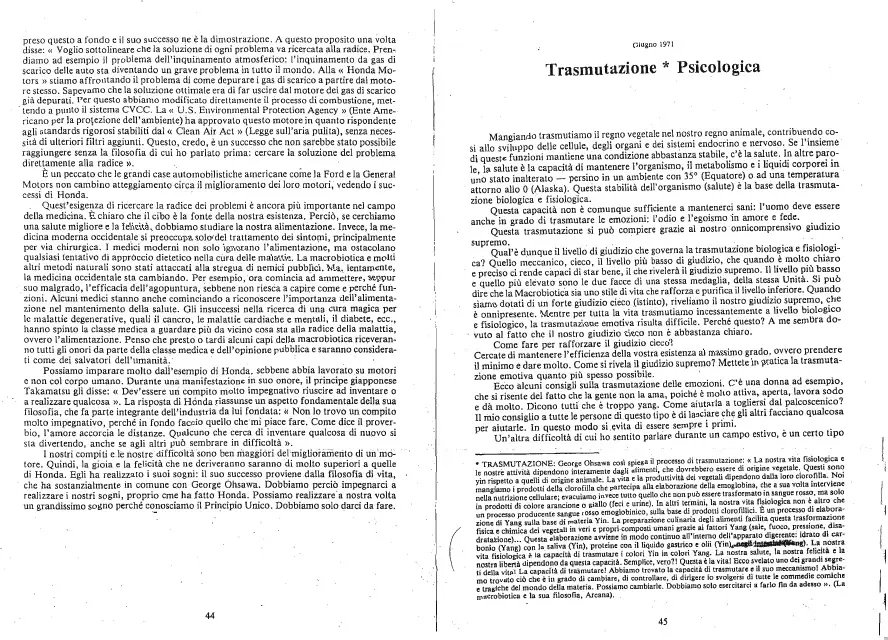 Questo libro è una testimonianza di un uomo sincero e flessibile, aperto agli insegnamenti che la vita offre ad ogni istante, un uomo che è ancora in grado di esprimere meraviglia e gratitudine verso la vita e la natura. Possiamo magari non condividere tutte le sue opinioni, ma saremo sicuramente rinfrescati e stimolati dallo spirito che le anima. Il contributo di Hermann Aihara è tra i più importanti sia per chi sì avvicina ora alla Macrobiotica, sia per coloro che la praticano già da tempo.