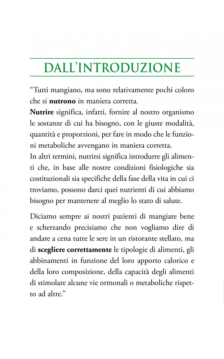 Il libro mostra come non esista un’alimentazione valida per tutti, ma una strada personale fatta di scelte consapevoli, qualità, equilibrio e adattamento alle diverse fasi della vita. Il cibo diventa così un vero strumento terapeutico, capace di prevenire malattie croniche e di sostenere la vitalità quotidiana.