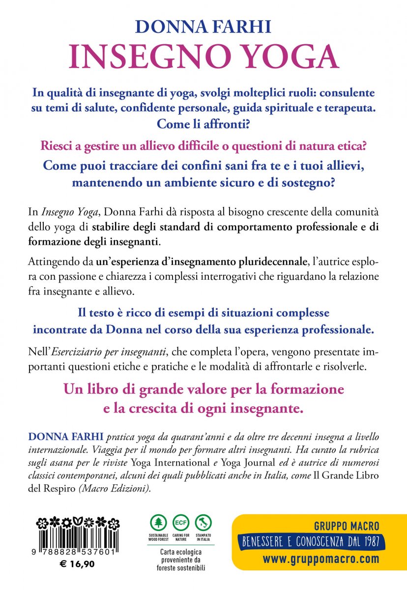 In Insegno Yoga, Donna Farhi dà risposta al bisogno crescente della comunità dello yoga di stabilire degli standard di comportamento professionale e di formazione degli insegnanti.