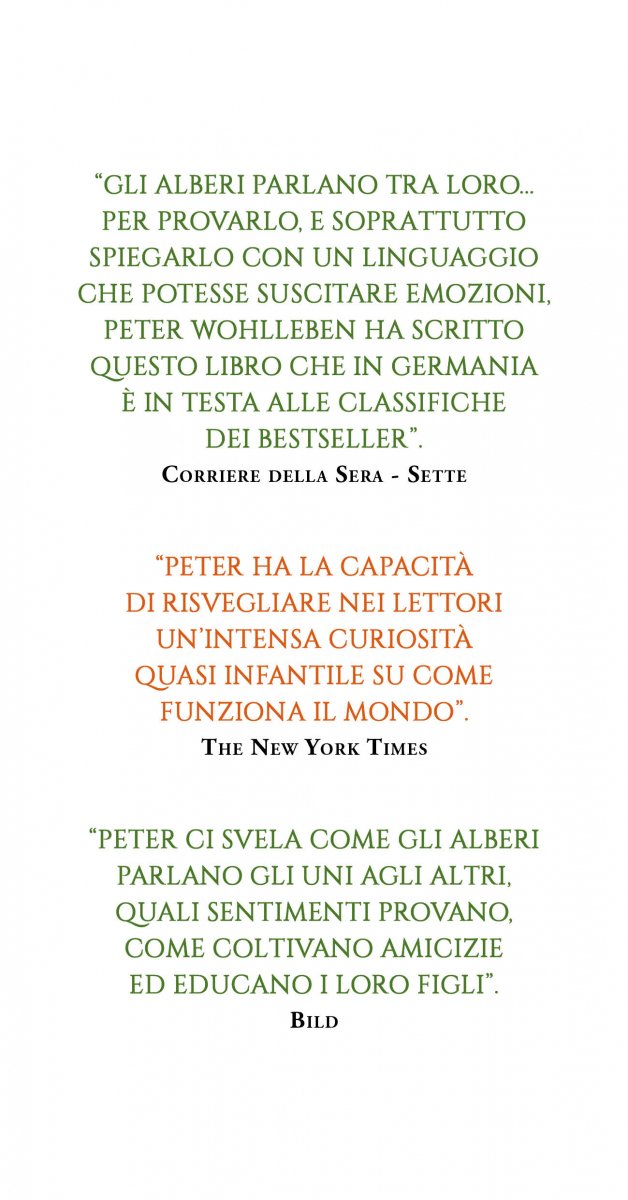 “Peter ci svela come gli alberi parlano gli uni agli altri, quali sentimenti provano, come coltivano amicizie ed educano i loro figli”.