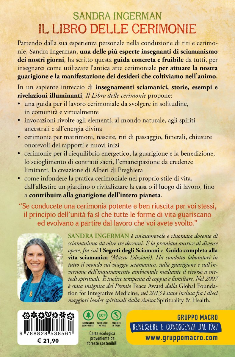 Partendo dalla sua esperienza personale nella conduzione di riti e cerimonie, Sandra Ingerman, una delle più esperte insegnanti di sciamanismo dei nostri giorni, ha scritto questa guida concreta e fruibile da tutti per insegnarci ad adattare l’antica arte cerimoniale al fine di attuare la nostra guarigione e la manifestazione dei desideri che coltiviamo nell’animo.