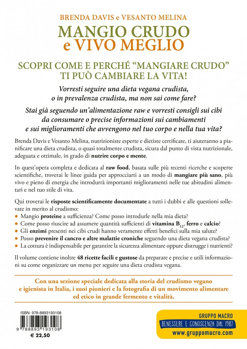Brenda Davis e Vesanto Melina, nutrizioniste esperte e dietiste certificate, ti aiuteranno a pianificare una dieta crudista o quasi totalmente crudista, sicura dal punto di vista nutrizionale, adeguata e ottimale, in grado di nutrire corpo, mente e anima.