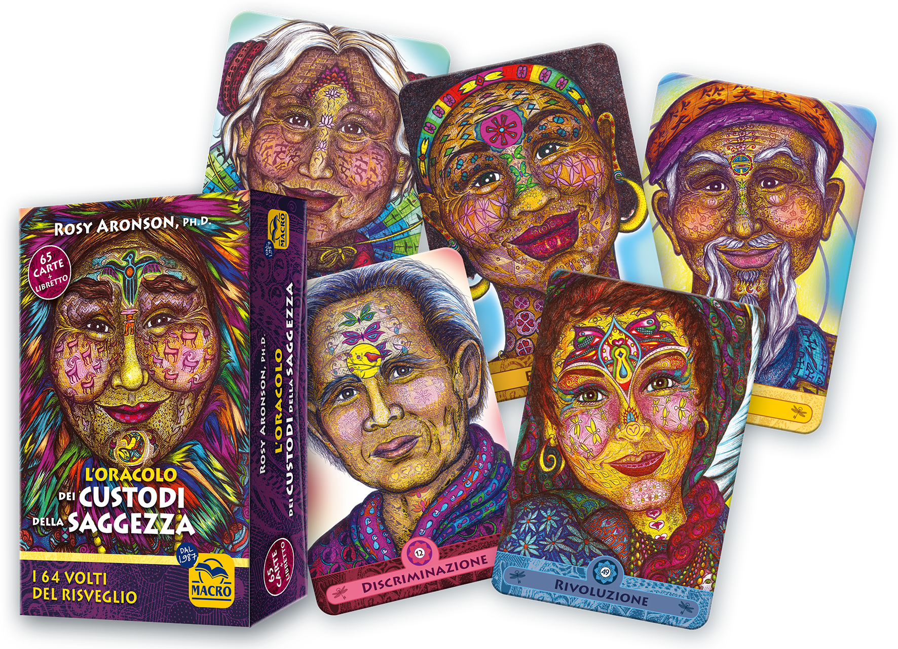 L’Oracolo dei Custodi della Saggezza è molto più di un mazzo di carte: è uno strumento potente e trasformativo che fonde arte, psicologia archetipica e crescita spirituale. Creato da Rosy Aronson, in dialogo con l’opera di Richard Rudd Le Chiavi Genetiche, questo cofanetto raccoglie 64 volti disegnati a mano, ognuno portatore di una storia, un messaggio, un invito alla contemplazione.