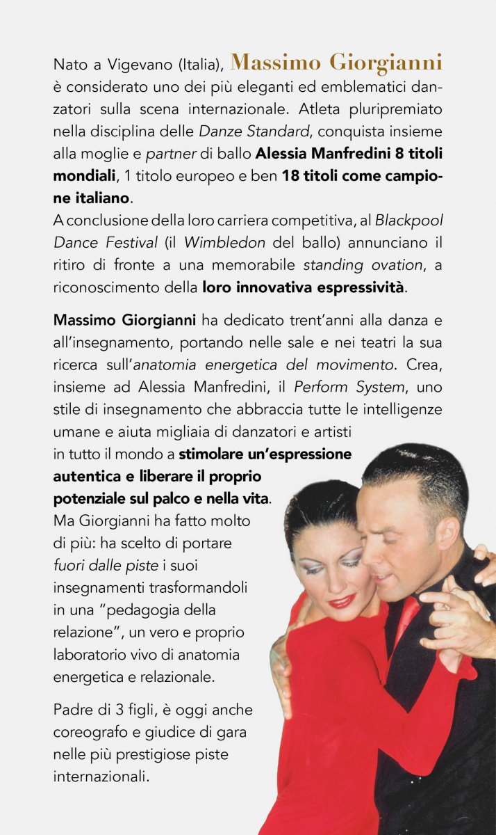- L'autore è una voce autorevole, esperto di movimento e relazione: 30 anni di esperienza nell’insegnamento del movimento, maturata come ballerino pluripremiato, maestro e formatore di Danza Sportiva a livello internazionale.
